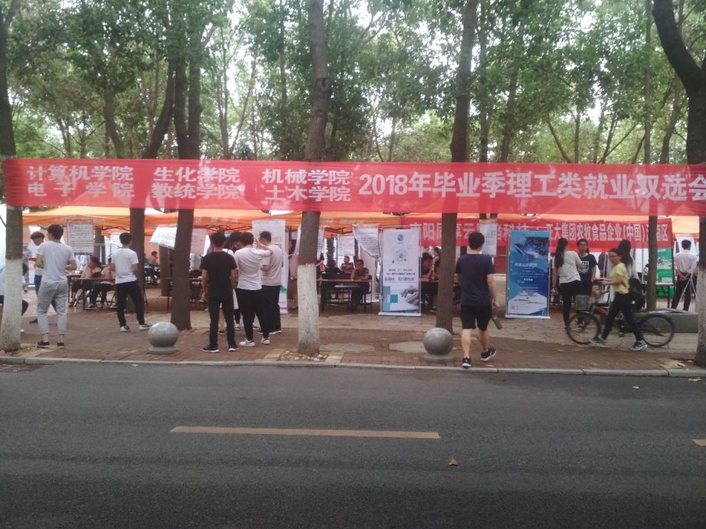 本网讯(学生记者/李婷)5月18日,在西北校区香樟林,计算机与信息工程学院、电子与电器工程学院、生化与化学工程学院、数学与统计学院、土木工程学院、机械与汽车工程学院共同举办了2018年毕业季理工类就业双选会。