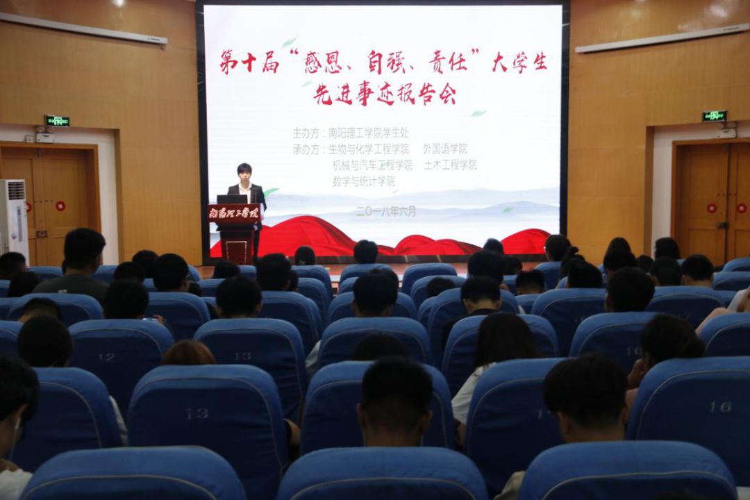 周畅 朱宇晗)6月7日,生化学院、外国语学院、数统学院、土木工程学院、机械学院在领创空间二楼报告厅联合举办第十届“感恩、自强、责任”大学生先进事迹报告会。学生处副处长赵东江及五个学院老师代表出席报告会,在校部分17级学生聆听了报告会。