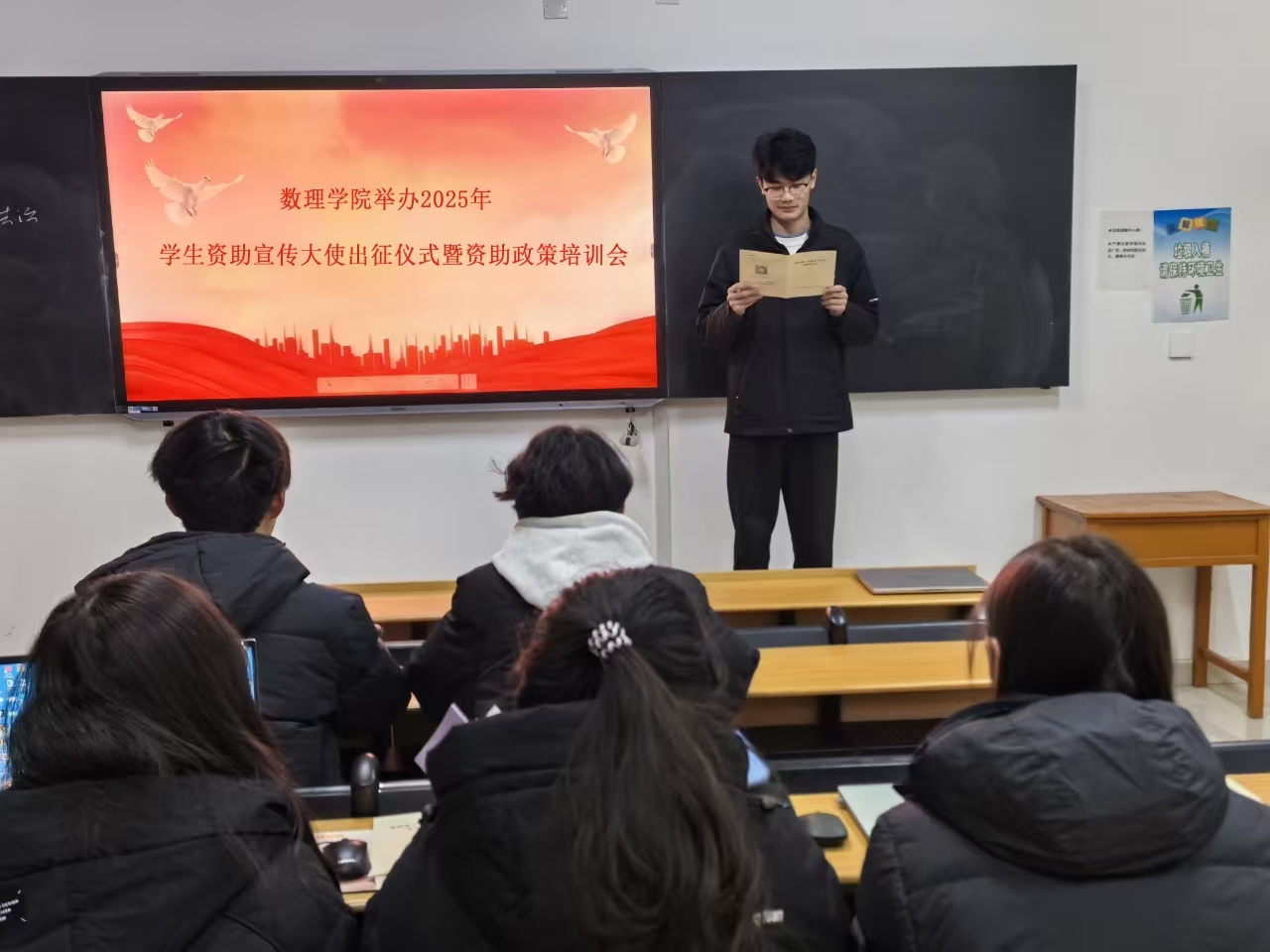 本网讯(学生记者/潘恒安)12月30日,数理学院在20教409举办2025年学生资助宣传大使出征仪式暨资助政策培训会。
