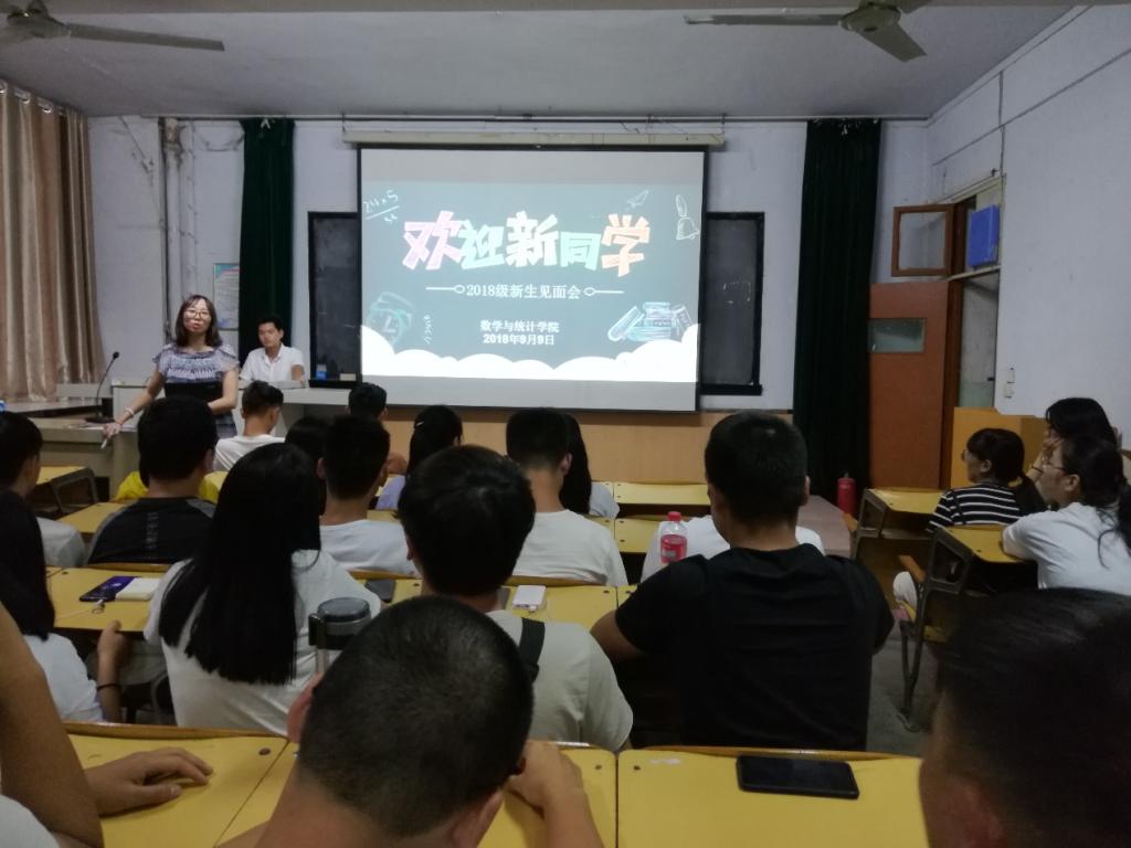 本次大会公分两部分进行,第一部分为新生见面会。为了大家更好地相互认识,对新生们进行点名。经过简单的相互认识、了解之后,辅导员就宿舍卫生、查寝及安全等问题进行了详细地介绍;同时,辅导员向在座的新生介绍了各班的班导,班导们依次上台进行了自我介绍,他们向新生们表示会尽自己最大的努力帮助同学们适应大学生活,并向同学们提出了许多真挚和宝贵的建议。