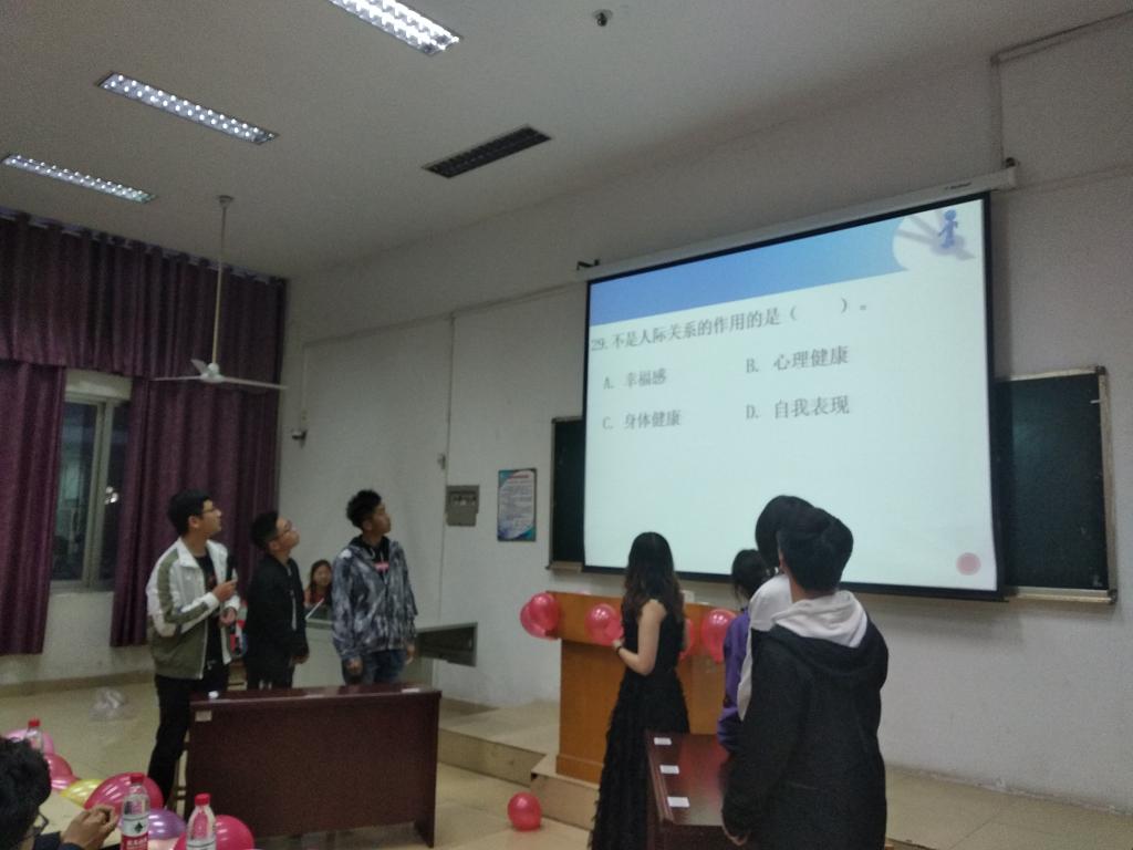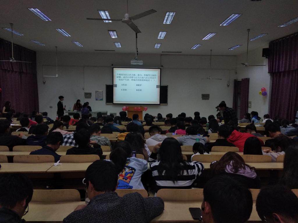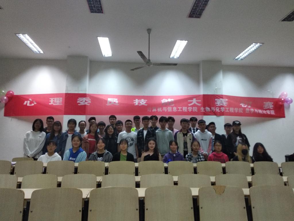 本网讯(学生记者/李霜)4月25日晚,我院同计算机与信息工程学院、生物与化学工程学院在7教101教室共同举办了“心理委员技能大赛”初赛,本次比赛由计算机与信息工程学院两个班级,生物与化学工程学院两个班级,以及我院的统计班同学近两百五十人参与。