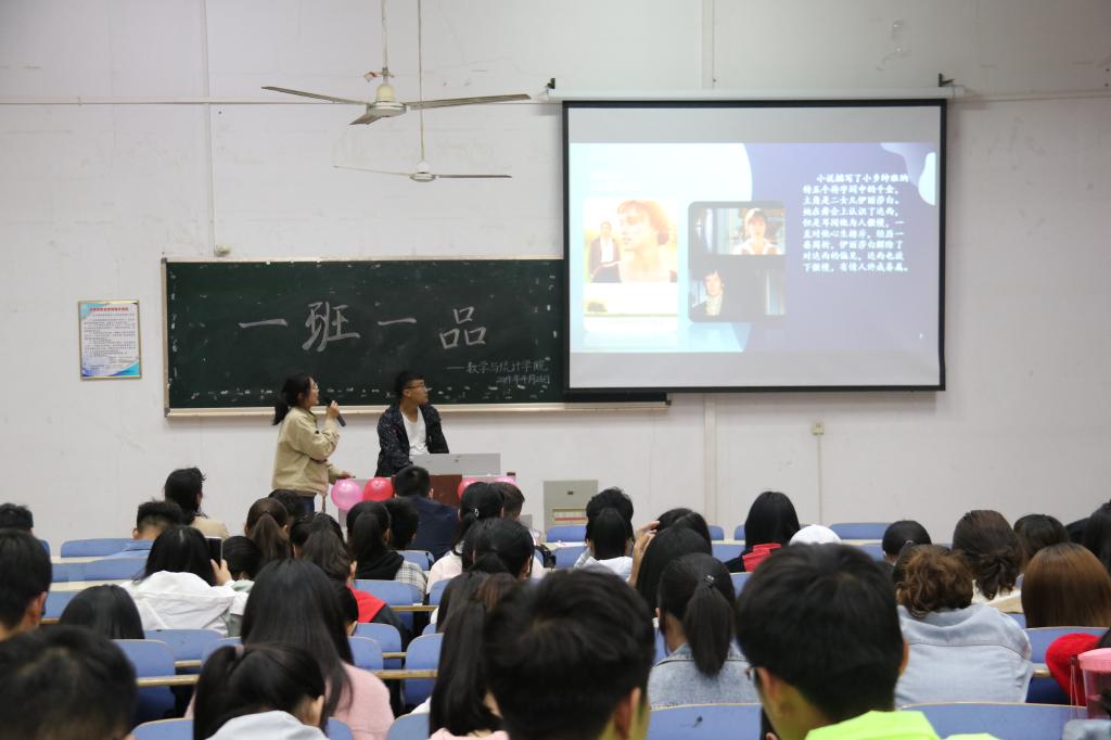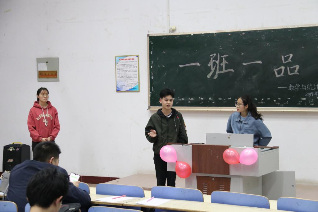 本网讯(学生记者/李霜、王雅芬)4月26日晚,我院在6教101教室举办第一届“一班一品”学风品牌建设活动。本次活动有幸邀请到了我院团学办主任王满、17经数班学业导师王萌和18经数班学业导师柳静担任评委,以及我院大一和大二全体学生参加了本次活动。