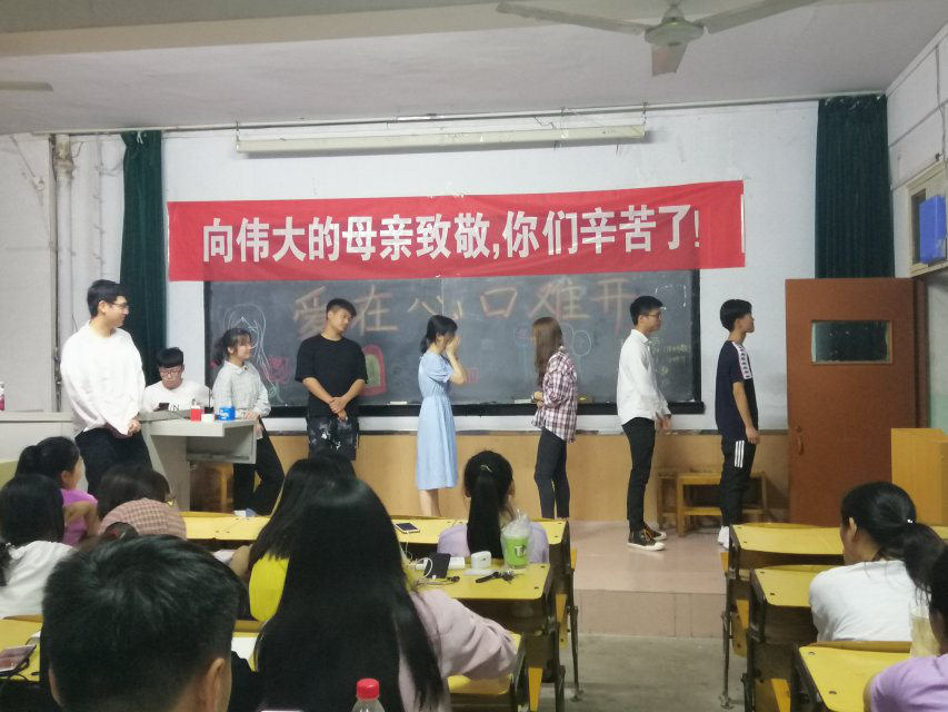主持人播放了关于同学们对母亲的祝福和母亲们对孩子的期望的视频,表现出了大学生对母亲真挚的情感。最后,班会在主持人总结完结束。