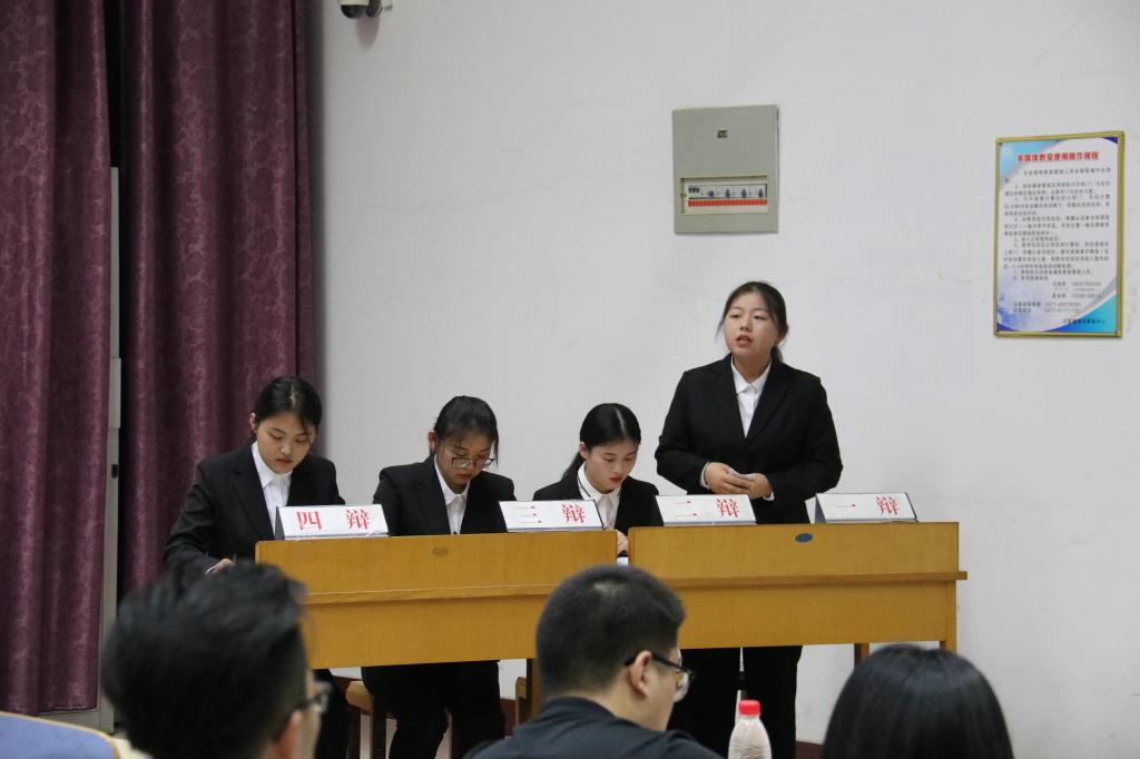 经过主席简短的开场介绍后,我院的正方一辩以“劝是一种手段,而阻是一种态度”为角度进行阐述己方观点,而反方则围绕着“劝是一种手段,而阻是一种目的”为核心来反驳正方观点。场上的辩手们旁征博引、妙语连珠,到了激动人心的自由辩论环节,反方以马云的坎坷历程作为案例来证明己方观点,但正方辩手毫不畏惧,双方辩手你来我往,根据辩题展开了更深层次的辩论,进行激烈的交锋对战,场上的辩友们个个妙语连珠,将比赛推向了高潮。最终,我院以精彩的表现获得了胜利,反方四辩获得最佳辩手称号,本场比赛在观众们热烈的掌声当中,拉下了完美的帷幕。