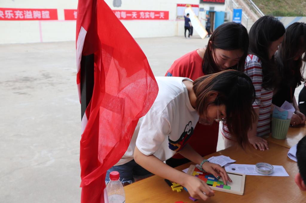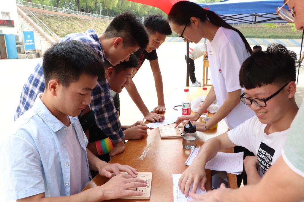 本次活动我院承办了两个心理类活动。一是数字华容道:该游戏以数字为背景,参与的玩家4个同学为一组,需将带有数字的棋子按照由1到16的顺序排好,用时最短的玩家就可以取得成功。排列的过程只能通过移动的形式实现,不可抠出、摆放。二是盲人积木:请参加活动的玩家事先观察积木的排列顺序,两两一组戴上眼罩进入相对应的比赛区域进行比赛。在比赛中,需将积木按照原来的顺序组装到一起,小组中用时最少的参赛选手获胜。其余四项活动分别由音乐学院、生化学院负责。