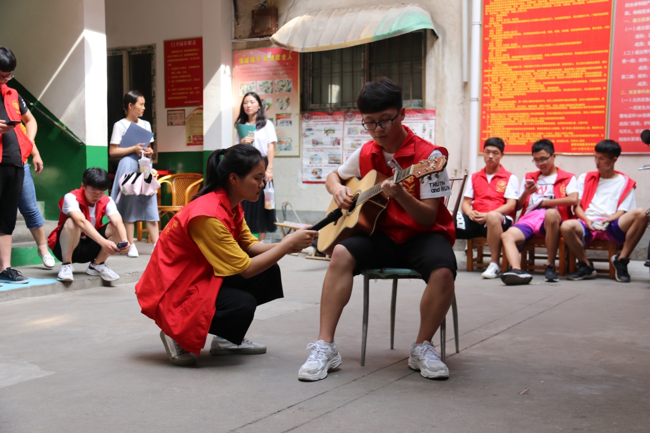 为了本次的志愿活动,我们的志愿者们还为老人们准备了一些节目:首先是由30名志愿者们齐唱《学习雷锋好榜样》和《茉莉花》,老人们的脸上露出了久违的笑容,特别是一些参军过的老人,歌声一响顿时就来了精神;合唱结束后,是由程宇桥同学带来的吉他弹唱《董小姐》,吉他声久久回荡在小小的院子里;最后是姜普文同学带来的《唱脸谱》,青涩腼腆的戏腔,让老人们眼神一亮。