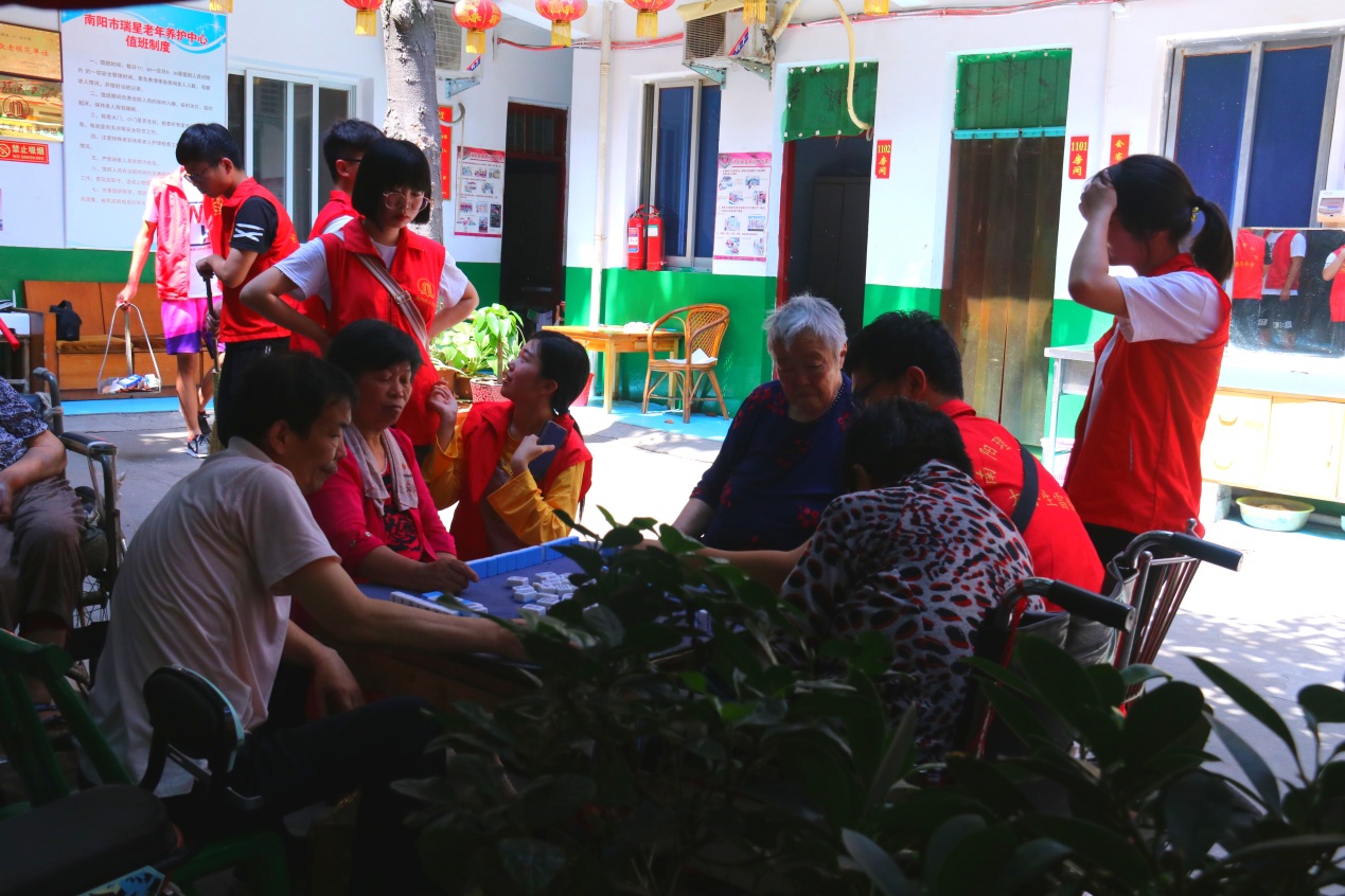 志愿者们来到养护中心后,看到老人们在宁静的小院子里晒太阳、聊家常。在进行了简单的介绍和交接之后,我们的志愿者们便开始了本次的志愿服务:一部分志愿者帮忙打扫养护中心,一部分志愿者陪老人们聊天、唱歌。老人们向他们阐述自己的人生经历,志愿者们也将自己的生活趣事与老人分享,养护中心里充满欢声笑语。