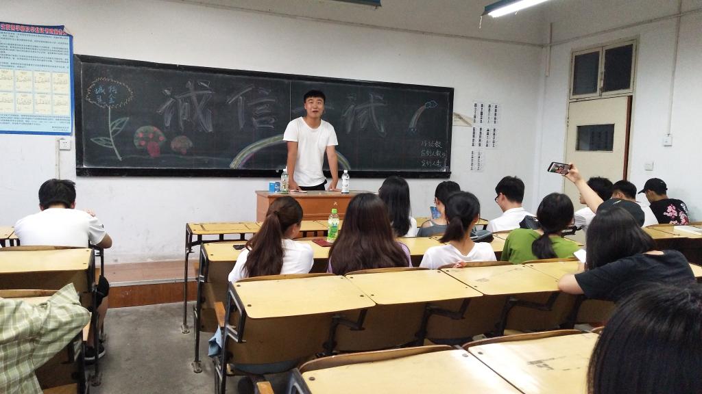 本网讯(学生记者/李霜、王雅芬)为营造良好的学习氛围,引导青年学生讲诚信、树诚信、践诚信,弘扬社会主义核心价值观,体现公平公正的考试原则,增强学生的诚信意识及纪律意识,更好地响应学院“诚信考试”的号召,6月19日,我院18经数班和18统计班分别在1510与1508教室组织开展了“诚信考试”主题班会。
