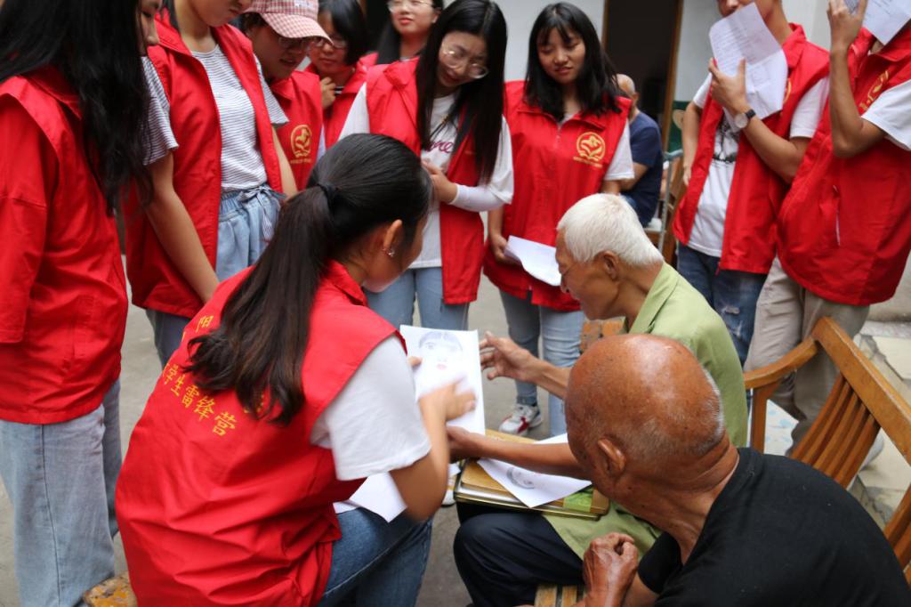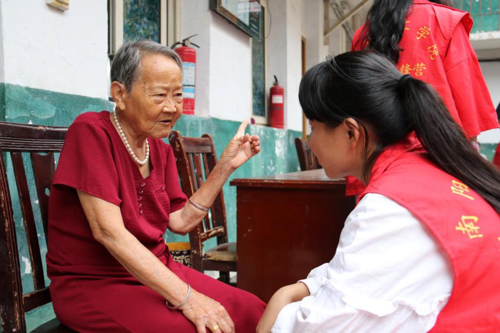 最后,老师们和志愿者们一同来到了康乐敬老院,为老人们送去大米、牛奶和食用油等慰问品,并表达了节日的问候。志愿者们帮助老人们打扫卫生,陪老人们聊天,、老人们向大家谈起自己的过去,通过他们的故事,志愿者们也了解到了时代的变化,狭小的院子里充满欢声笑语。交谈一阵过后,志愿者们给老人们表演了准备的节目。分别是诗歌朗读《歌唱祖国》和歌曲《我们走在大路上》,慷慨激昂的朗诵和气势磅礴的合唱,让老人们不由自主地跟着打节拍,赢得阵阵掌声。