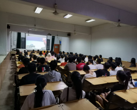 首先,主持人带领大家一起观看了相关视频,走进我们与祖国共奋进的世界,了解祖国70年砥砺前行,70年波澜壮阔的伟大历史进程。视频中指出心中有梦,只要出发,就会到达;既要仰望星空,又要脚踏实地。随后进入互动环节,同学们踊跃上台发表感想。最后由团员代表带领全体同学宣读誓词,铿锵有力的入团誓词引领我们时刻牢记自己的身份,持之以恒增强共青团仪式。