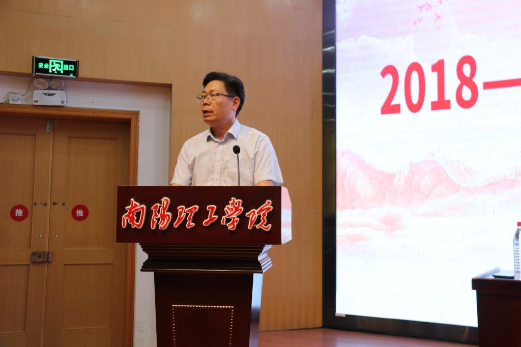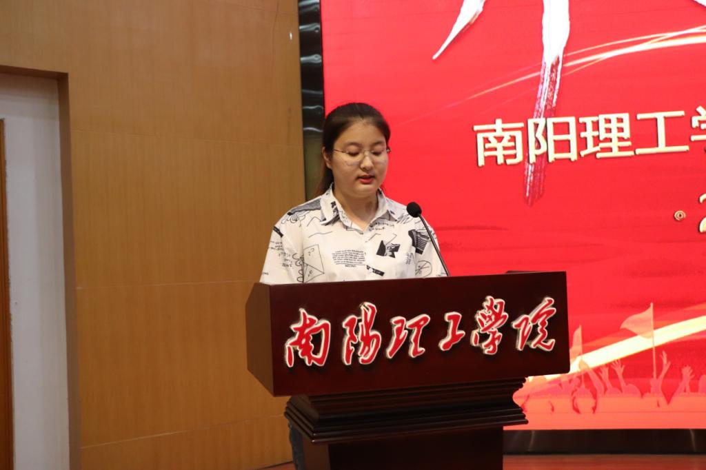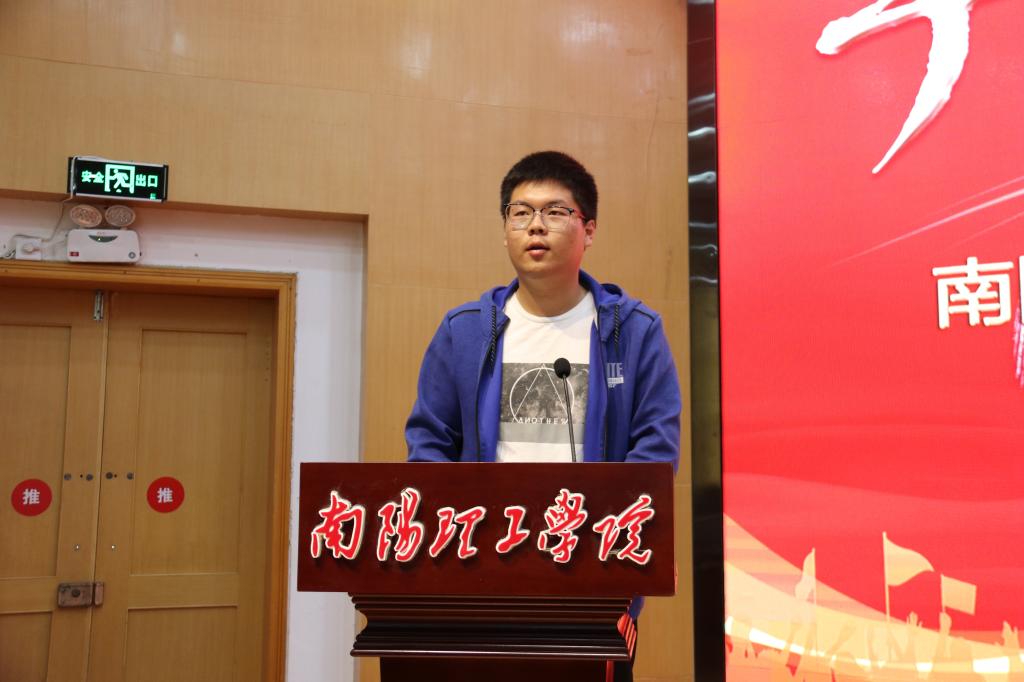 第四项,2019级新生李青濮代表全体新生上台发言。他首先表达了对进入南阳理工学院开始大学生活的美好憧憬,并号召同学们认真规划自己的大学四年。作为新青年,更应该时刻关注当下,用于追求真知和梦想。