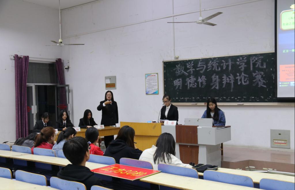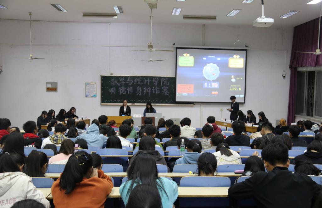 本网讯(学生记者/黄榕溶)11月11日晚,我院在六号教学楼六阶一教室举办“明德修身”辩论赛。本次辩论赛的辩题为“生命之悲在于不可重来还是生命之喜在于不可重来”,活动有二百余人参加。