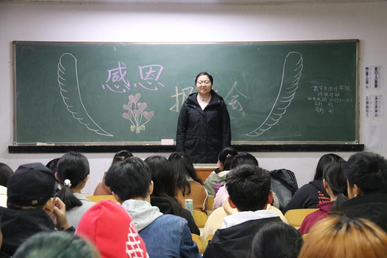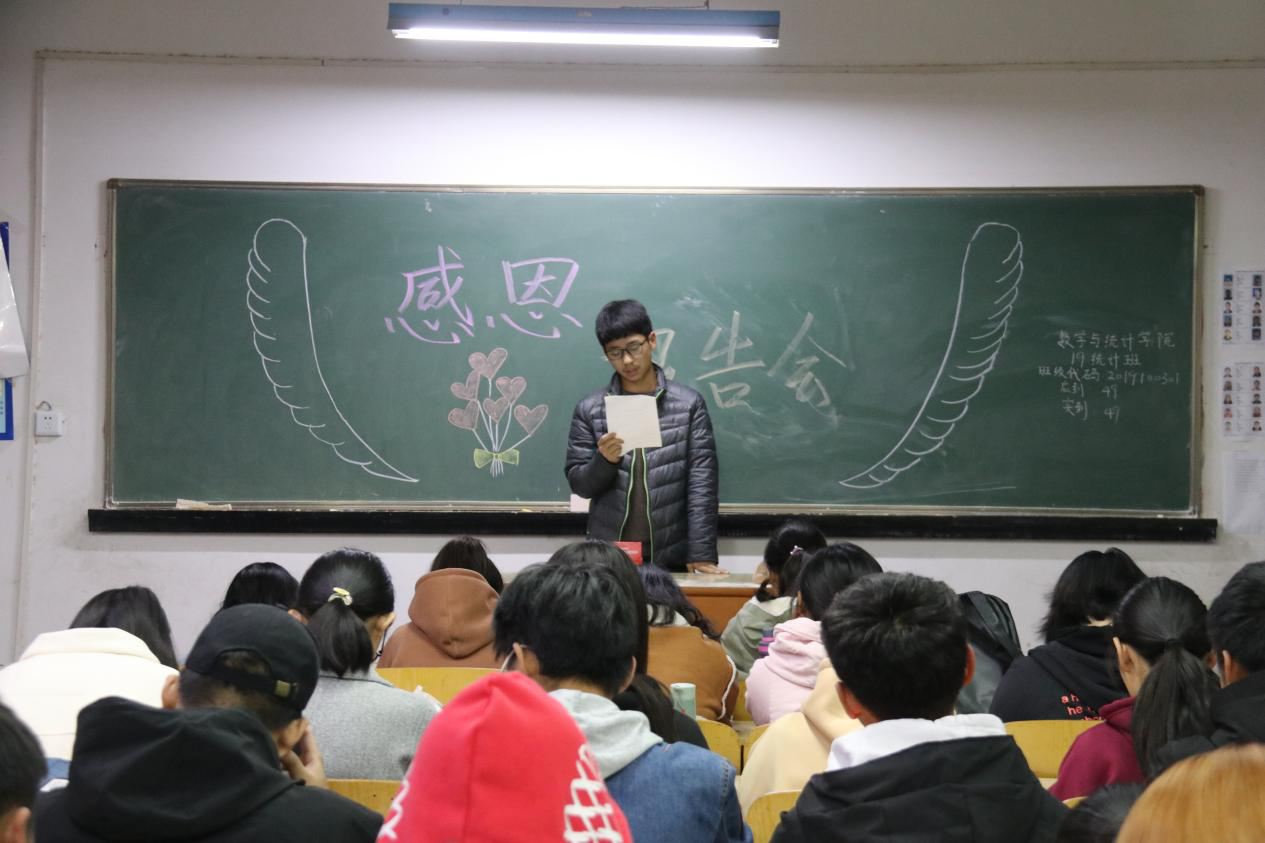本网讯(学生记者/陈思桦 刘欣雨)11月21日,数学与统计学院17、18、19三个年级分别在1506、1508、1510教室成功开展了感恩自强报告会,本次活动近300人参加。