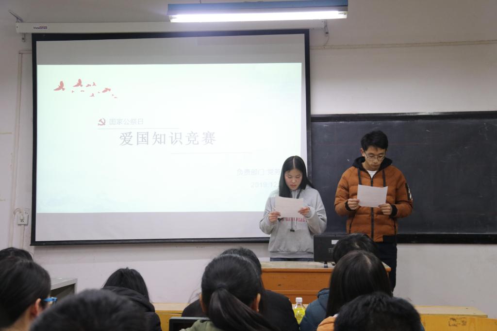 本网讯(学生记者/陈思桦 黄榕溶)12月12日,为纪念第6个南京大屠杀死难者国家公祭日,我院在1408教室举办爱国知识竞赛。本次比赛共18名同学参加。