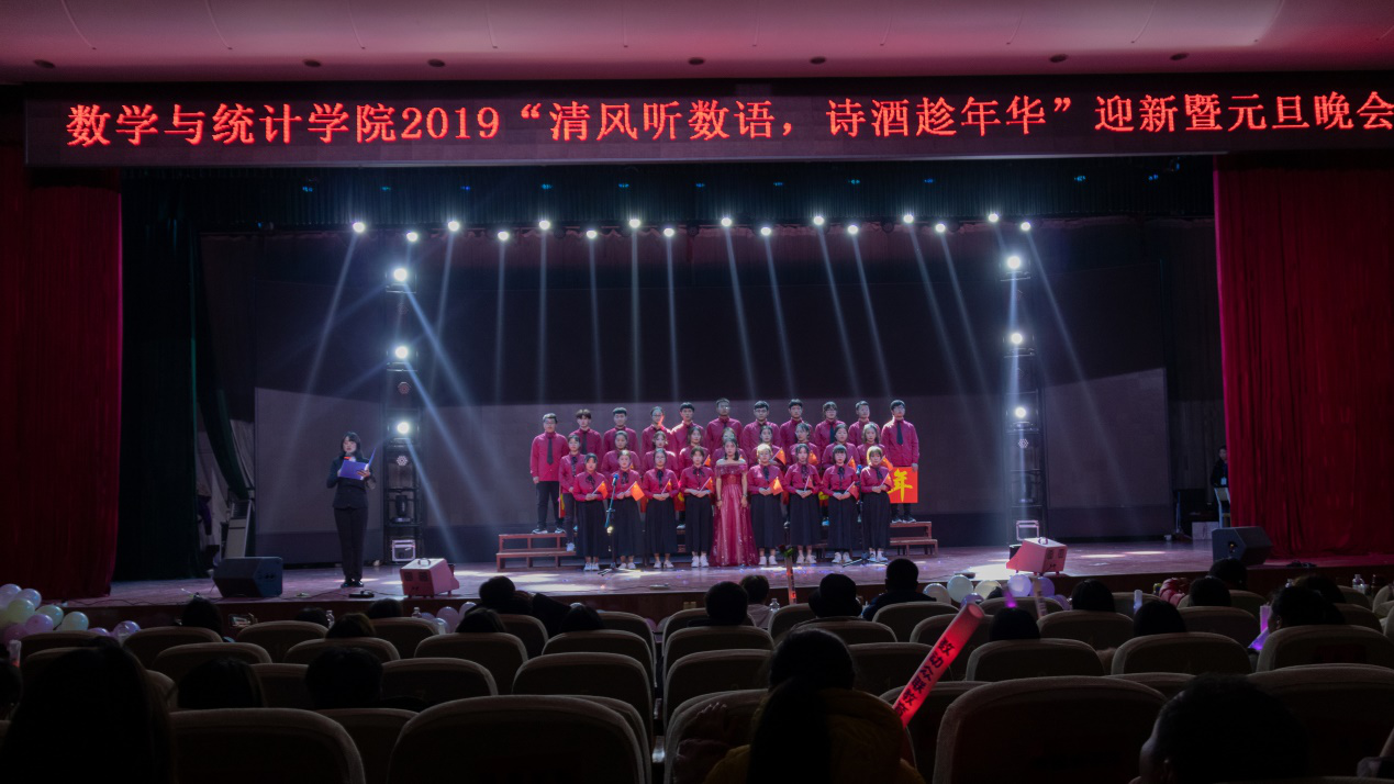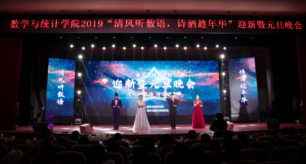 本网讯(学生记者/崔梦恬、黄榕溶)12月20日,数学与统计学院在毕业大厅隆重举办“清风听数语,诗酒趁年华”迎新暨元旦晚会。学生处副处长赵东江,团委副书记郭兴华与数学与统计学院党总支副书记陈同勉,副院长郭学军及全体师生800余人观看此次晚会。