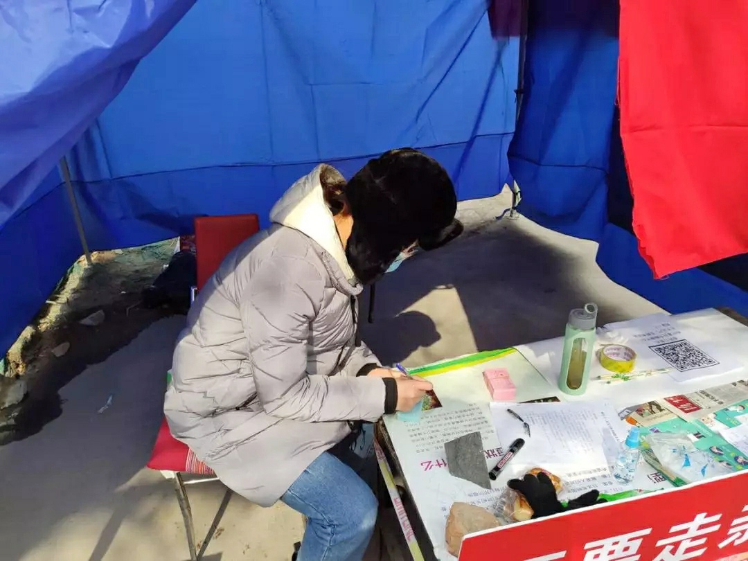 孙雅静和其他志愿者们身穿红马甲,在社区门口布置了条幅和宣传板,劝导来往群众正确佩戴口罩,减少出门,并阻止外来人员车辆的进入,进行出入口监测点的排查等工作。孙雅静表示:社区的工作人员们都很不容易,我们志愿者的加入也减轻了他们的负担,最近几天社区群众的出入明显减少了,这说明我们的工作起到了效果。