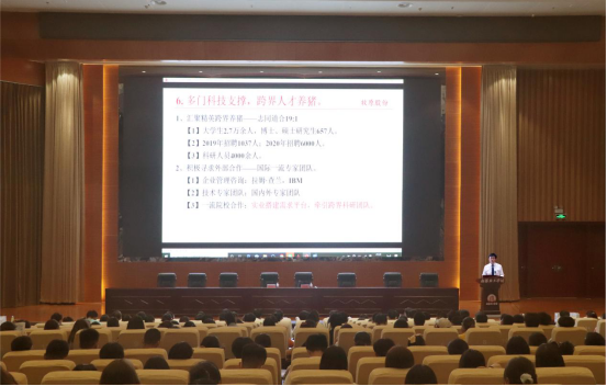 本网讯(特约记者/冯清)9月8日晚,数理学院与信息工程学院联合邀请牧原集团首席智能官张玉良来我校作题为“科技推进行业发展,跨界引领产业升级——牧原产业智能化发展和用人人才理念”的报告。副校长肖泽昌、团委书记郭兴华以及数理学院与信息工程学院部分师生共400余人参加本次报告会,数理学院党委副书记王锦瑾主持。