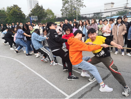 开幕式设置了拔河比赛、“神笔马良”、“摸砖过河”、“两人三足”等游戏。拔河比赛采用淘汰制和循环制,20级和19级同学以班级为单位参赛。在比赛开始口令响起时,所有人都用尽全力往后拉,尤其是双方实力相当,胜负难分时,各队队员更是大家都咬紧牙关,丝毫不让,努力坚持到最后。最终20经数班获得了胜利。