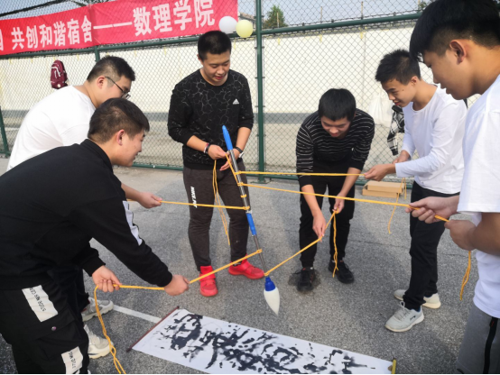 拔河比赛过后,同学们以宿舍为单位进行了“神笔马良”、“摸砖过河”、“两人三足”等游戏。这些素质拓展游戏不仅锻炼了大家的凝聚力、团结协作能力,更增强了同学之间的默契,促进了彼此的交流,对增进同学们之间的情感有很大帮助。