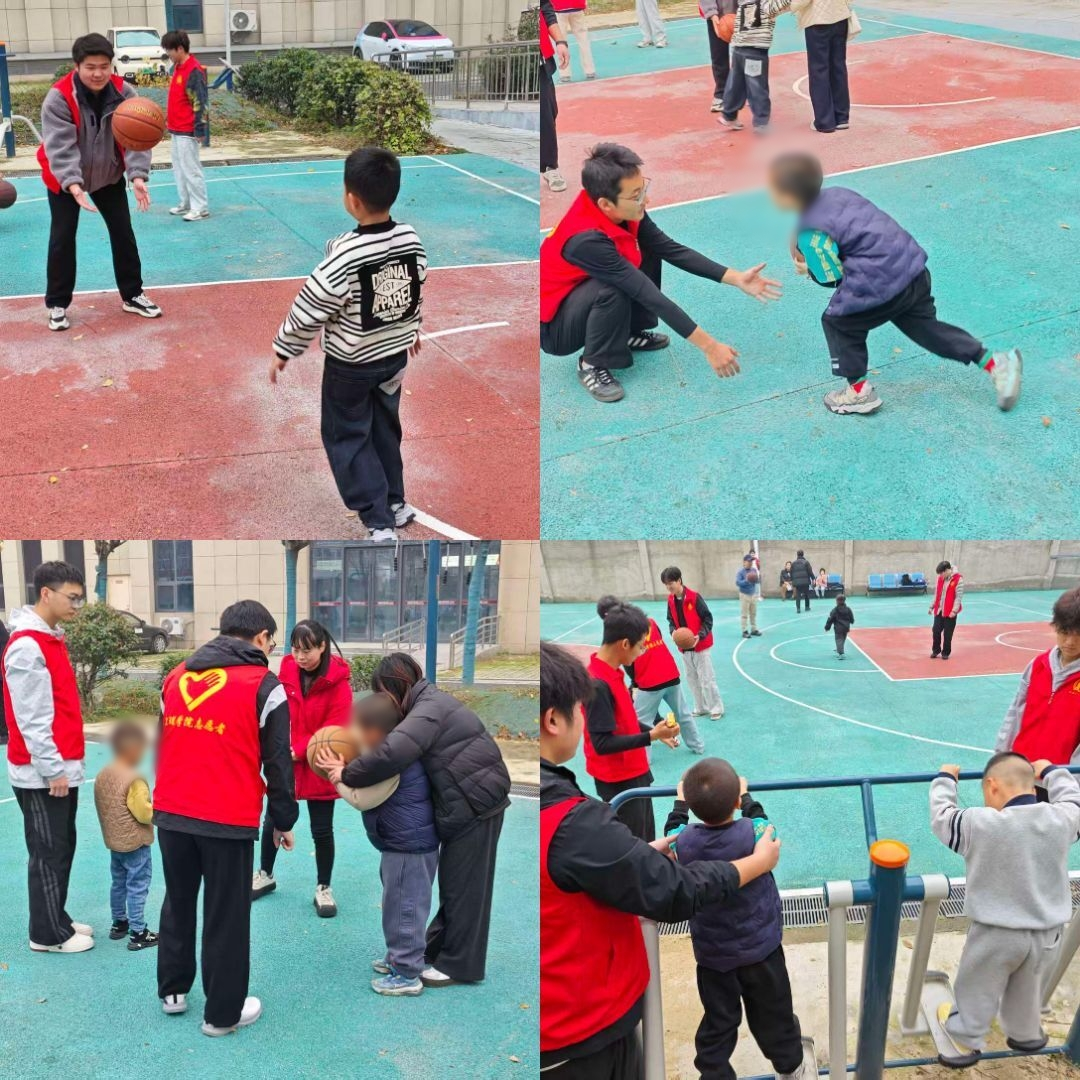 活动中,志愿者分组陪伴孩子们进行篮球互动。从简单的拍球练习入手,用耐心的引导、温暖的笑容和真诚的掌声回应每一次尝试。传球游戏中,志愿者引导孩子们用眼神交流、简单表达,在互动中培养他们的规则意识与协作能力。志愿者们纷纷表示,每一次眼神交汇、每一个微小进步,都让他们感受到陪伴的价值。孩子们在运动中逐渐放松身心,从沉默回避,到主动伸手接球。志愿者们的到来,为他们封闭的内心打开了一扇窗。