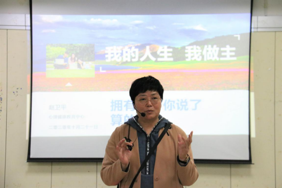 本网讯(特约记者/冯清学生记者/陈思桦)为使新生更快更好地适应大学生活,10月21日,数理学院邀请心理健康教育中心主任赵卫平为学院全体20级新生做“我的人生,我做主”心理讲座。