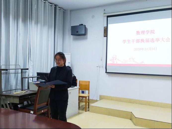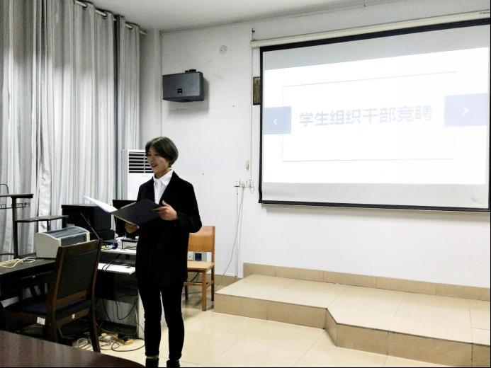 本次干部换届选举分为个人竞聘演讲和答辩两个环节。第一轮是各学生组织负责人竞选,六位竞选人员依次上台进行了竞聘述职演讲,展示了自己的优势,总结了自己两年以来在学生会的工作,并对今后学生组织的发展表达了自己的看法。