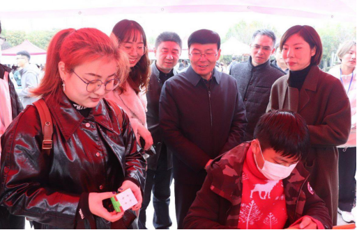 本网讯(特约记者/冯清学生记者/温尉雅)11月22日,由数理学院主办的南阳理工学院第二届“知数达理,续写华章”数学文化节之数学嘉年华活动在齐贤广场举办。校党委副书记、工会主席张伟,学生处处长路瑞峰,校团委书记郭兴华莅临参观。