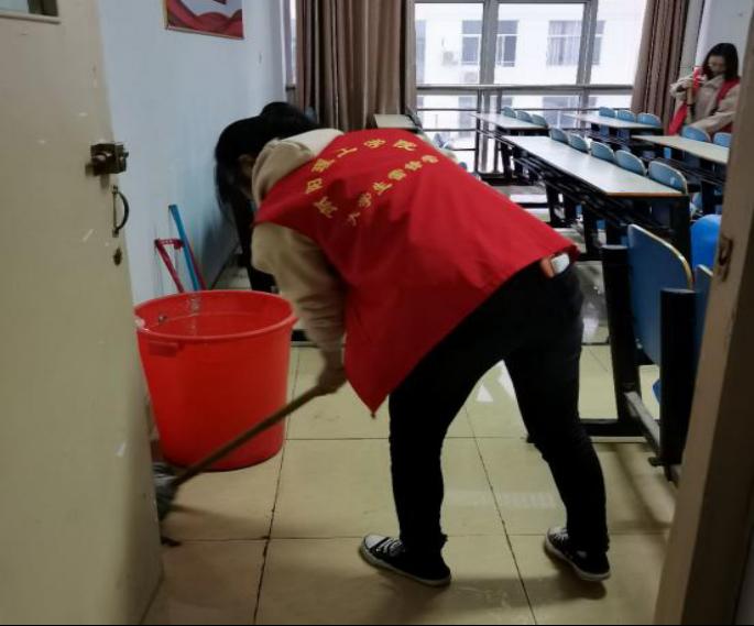 11月21日,我院在13号教学楼开展“清扫系楼卫生,创设美好环境”志愿服务活动。教学楼是同学们学习知识和成长的地方,通过可爱的志愿者们的辛勤劳动,大家擦黑板、扫地、拖地,相互配合,给同学们带来清爽舒适的工作和学习环境,同时也充分展现了我院学子精神饱满的状态和乐于奉献的精神。