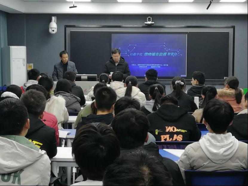 此次报告会是我院新生起航教育的内容之一,使同学们对数字化城市管理有了基本认识,了解了信息技术以及数学统计在智慧城市建设中的重要作用,加强了专业认同感,对行业需求以及就业方向有了初步了解。