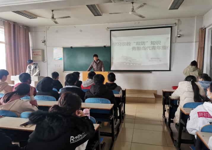 本网讯(学生记者/韩潇堃、韩瑞丽)为了帮助新生正确认识宗教,树立正确的世界观和价值观,11月30日,我院在13教604举办“学习宗教‘双防'知识,勇担当代青年重任”主题班会。20级全体新生参加。