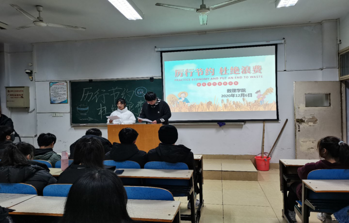 本网讯(学生记者/韩潇堃、李梦瑶)为提高同学们厉行节约的意识,我院于12月6日在13教514举办“厉行节约,杜绝浪费”主题班会,20级全体新生参加。