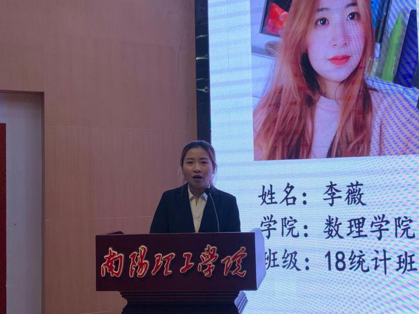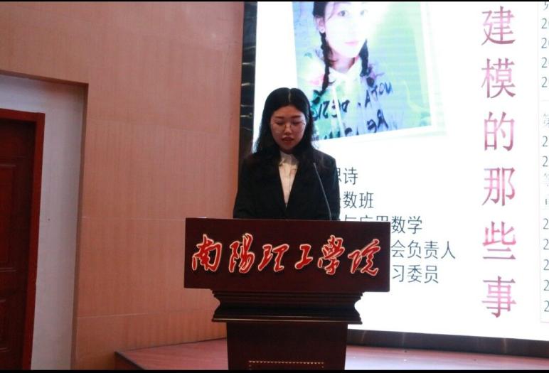 学科竞赛代表蔡思诗同学从自己第一次参加数学建模开始分享了多次参加竞赛的经验,并表示,参加比赛能够让人变得更加自信,能够更好的巩固和检验自身专业知识,对待结果我们抱有平和而乐观的心态,过程比结果更重要。最后,她鼓励同学们要积极参加数学建模等学科竞赛,锻炼实践能力,为自己的大学生活添姿加彩。