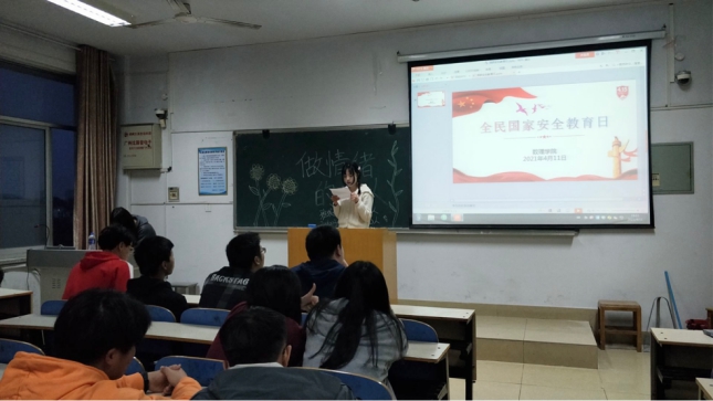 本网讯(学生记者/李梦瑶)为了引导大学生树立安全意识和能力,更好地掌握安全知识。4月11日,我院在13教511举办了“国家安全教育日”主题班会。此次班会由20经数班黄桂梅同学主持,20级全体学生参加。