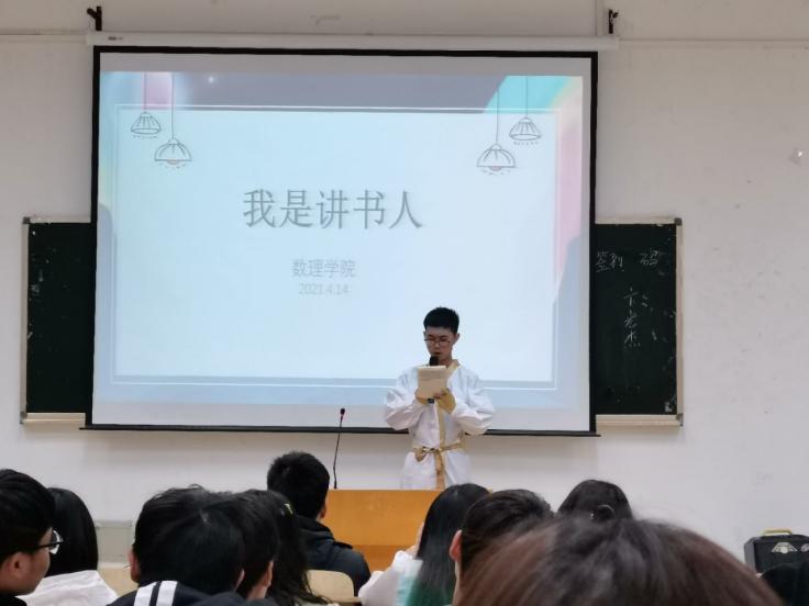 本网讯(学生记者/王琴)为了营造浓厚的校园文化氛围,推动全民阅读,4月14日晚,我院在7教101举办了“我是讲书人”活动。此次活动由20经数班黄桂梅和张朝阳主持,辅导员谭萌和学生会主席团担任评委,19级和20级全体同学参加。