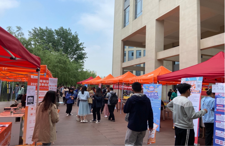 本网讯(学生记者/李梦瑶)为加强与用人单位的联系与合作,搭建就业平台,4月22日,我院与土木工程学院、数字媒体与艺术设计学院、智能制造学院、建筑学院在实训大楼前联合举办2021年春季招聘月双选会。