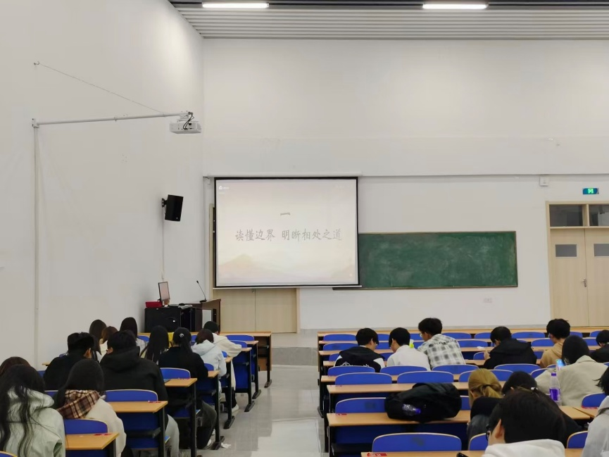 公开课上,主讲人围绕宿舍生活中常见的边界问题展开讲解,从“什么是边界感”切入,结合作息差异、卫生习惯、物品使用等真实案例,深入剖析日常琐事引发的矛盾,给出实用建议,要明确表达需求、学会温和拒绝、尊重彼此差异。集中观看现场秩序井然,同学们认真聆听、积极思考。