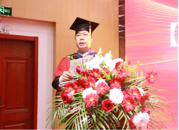 院长郭学军致辞。他对毕业生叮嘱道,首先要直面现实,脚踏实地,要学会调整好自己的心态,坚定“天生我才必有用”的信念不断前进;其次要不忘初心,叮嘱毕业生们要秉承“不甘示弱”的南工精神,敢于竞争,发挥自身的专业特长,一步一个脚印,继续为母校增光添彩;最后要心怀感恩,要感恩祖国,感恩父母,感恩老师,感恩同学,一旦拥有感恩的心,世界在眼中将会无限美好。