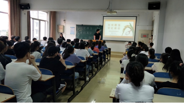 本网讯(学生记者/李梦瑶)“禾下乘凉梦,一稻便一生,袁爷爷一路走好。”为缅怀袁隆平院士为中国乃至世界粮食安全作出的杰出贡献,进一步增强学生节约粮食爱惜粮食的意识,5月30日,我院在13教514开展了“饱食者当常忆袁公”的主题班会。20级全体学生参加本次班会。