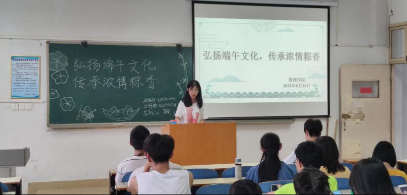 本网讯(学生记者/谷雪鹏)为弘扬中华民族传统文化,感受端午节丰富文化内涵,6月14日,我院在13教514开展了“弘扬端午文化,传承浓情粽香”主题班会。本次班会由20级团支书靳上典主持,20级全体学生参加。