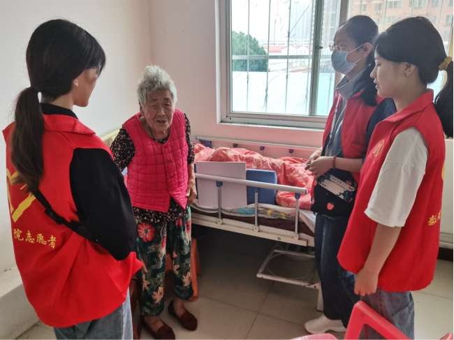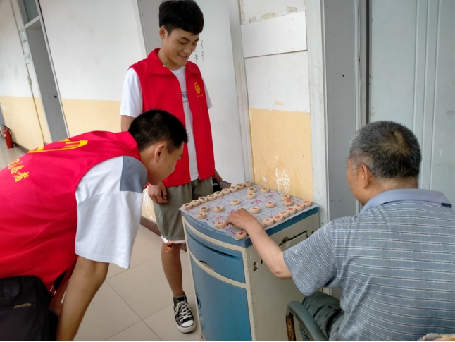 志愿者们有序地来到敬老院,他们热情地向老人问好,关怀老人生活情况和身体状况,大家随后便分散开来陪奶奶聊天,陪爷爷下象棋,给老人剪指甲。老人们也讲述他们曾经过端午的趣事以及端午节的习俗,同学们听的津津有味,感受着中国传统文化的魅力。由于许多老人行动不便,同学们纷纷拿起扫帚帮助爷爷奶奶打扫卫生,整理房间。随着老人们对志愿者们的感谢和赞赏,本次志愿服务活动接近尾声。