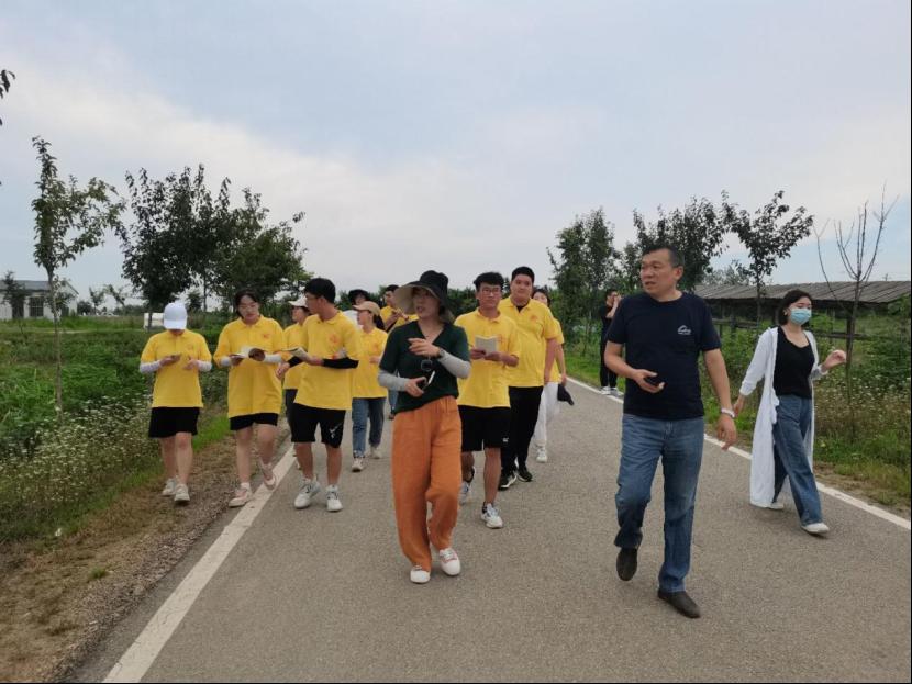 图为林果基地负责人为实践队员介绍基地面积、种植品种及未来规划等情况。中国青年网通讯员谷雪鹏摄