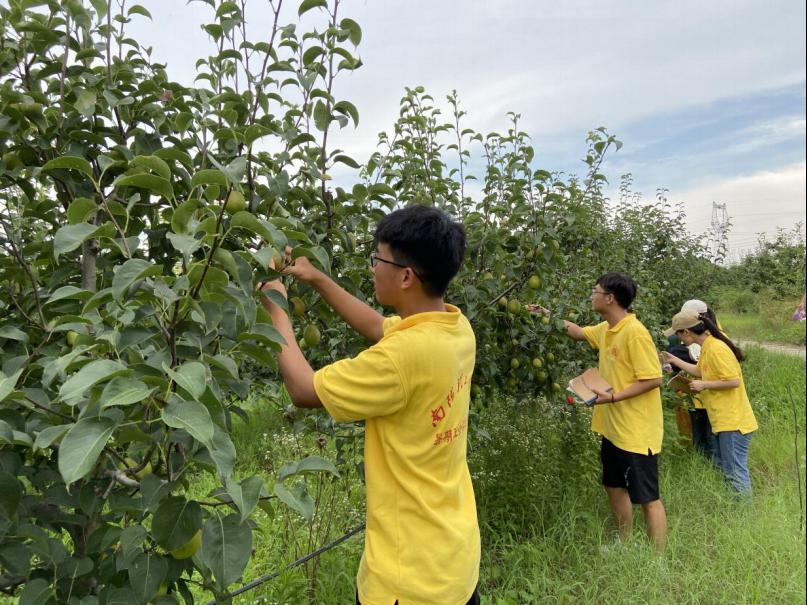 图为实践队员自己动手采摘、品尝绿色食品香酥梨。中国青年网通讯员魏瑞娜摄