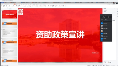 为进一步落实国家高校资助政策,推进资助育人工作,9月18日,我院线上开展资助政策宣讲主题班会,2021级全体新生参加。
