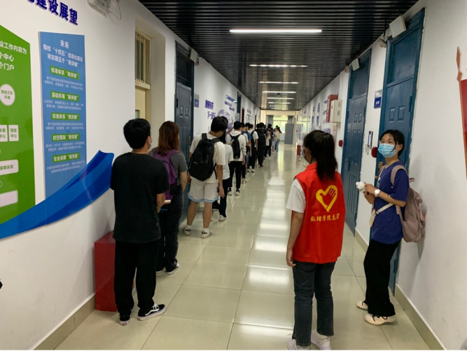 在检测现场,同学们佩戴口罩,按号码排队,志愿者全程维护秩序,提醒大家间隔一米保持安全距离,配合医护人员完成咽拭子采集,完成取样后及时有序离开,避免扎堆,切实保障了核酸检测工作的高效有序进行。