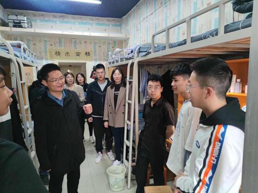 校领导随后进入学生宿舍慰问新生。副校长郝好山详细阐述学科的发展前景与生涯规划,鼓励同学们考研,向更高的学府迈进。新生们纷纷表示,一定加倍努力,为学校学院争光添彩。