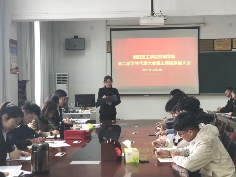 本网讯(学生记者/魏瑞娜)10月21日,我院在13号教学楼会议室举行第二届学生代表大会暨主席团换届大会。出席本次大会的有数理学院党委书记牛军科、团委副书记冯清、辅导员谭萌及我院学生代表。