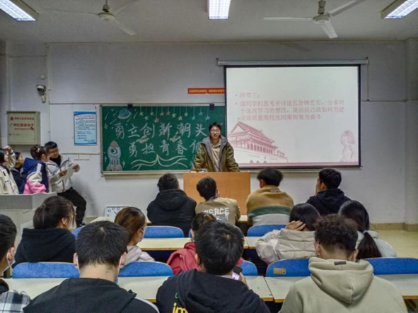 班会伊始,21级团支书陈瑞雯向我们讲述学习习近平总书记重要讲话和指示的重要性,通过观看视频《中国共产党河南省第十一次代表大会闭幕式》,同学们了解到中国共产党河南省第十一次代表大会精神,并积极分享自己对“如何建设高质量现代化河南”问题的看法。刘思航提到我们应先提高自己的知识水平,把个人发展梦想与国家民族前途深度融合,为建设现代化河南作出贡献。刘艺楠分享到,习近平总书记曾说过:人的一生只有一次青春。现在,青春是用来奋斗的;将来,青春是用来回忆的。