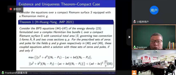 本网讯(特约记者/马峰 牛玉俊)12月8号上午,应数理学院邀请,河南大学数学与统计学院院长韩小森教授、副院长解俊山教授、副教授龚克以及河南科技大学数学与统计学院院长武新乾教授四位专家通过腾讯会议为学院师生作线上学术报告。