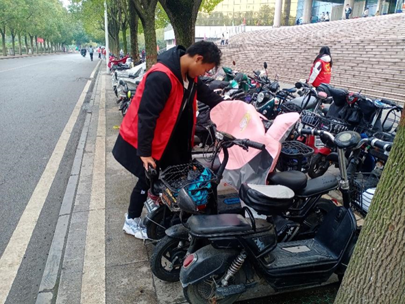 在图书馆摆放车辆活动中,志愿者们充满活力,积极地寻找摆放错误的车辆,并将其纠正;在打扫法制广场的活动中,志愿者们动用他们的“火眼金睛”,将隐藏在花坛、草丛里的塑料、烟头等垃圾一一找出,让法制广场变得更加整洁。