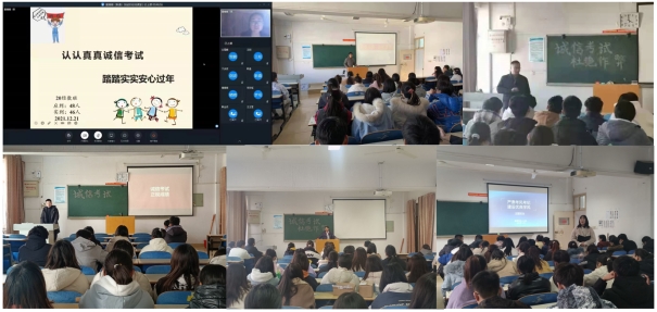 本网讯(学生记者/韩潇堃)为重申考试纪律,强调考风考纪,教育和引导同学们诚实做人、诚信考试,12月21日起,我院组织各班陆续开展“诚信考试,杜绝作弊”主题班会,班会由各班学业导师、辅导员主持。